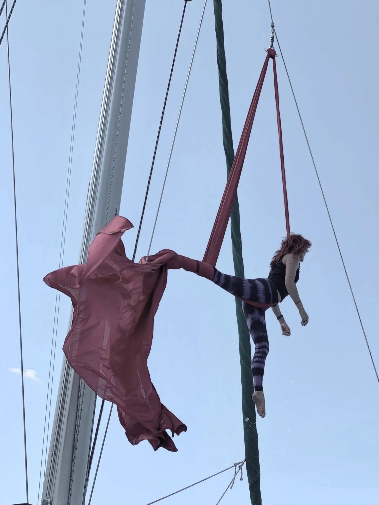 She is thrilled to be living on the water and loves sharing that joy with guests. In the right winds, she may even dazzle you with silks show from the spare halyard.